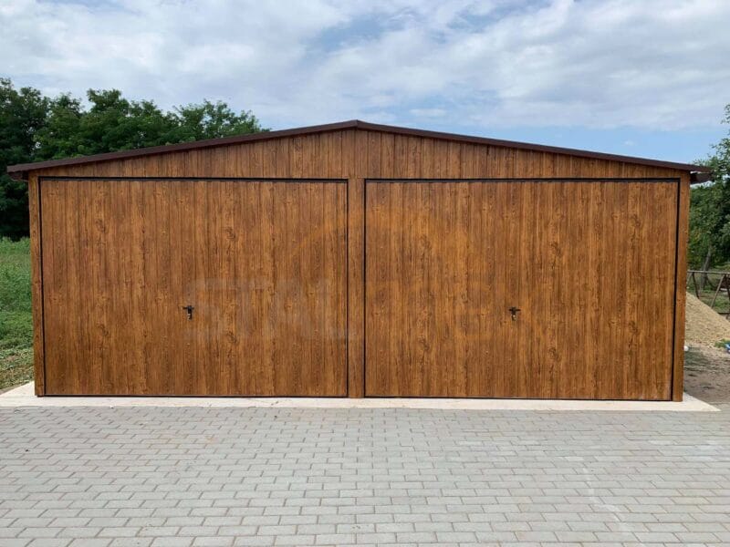 Garaż blaszany Drewnopodobny 6×5 m Złoty Dąb | Dach Dwuspadowy | 2 Bramy Uchylne