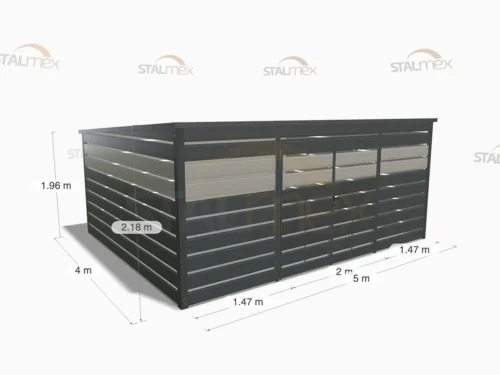 Wiata śmietnikowa 5x4m BTX 7016 Grafit Mat + RAL 9006 Jasny Szary | Lamele Poziome | Profil